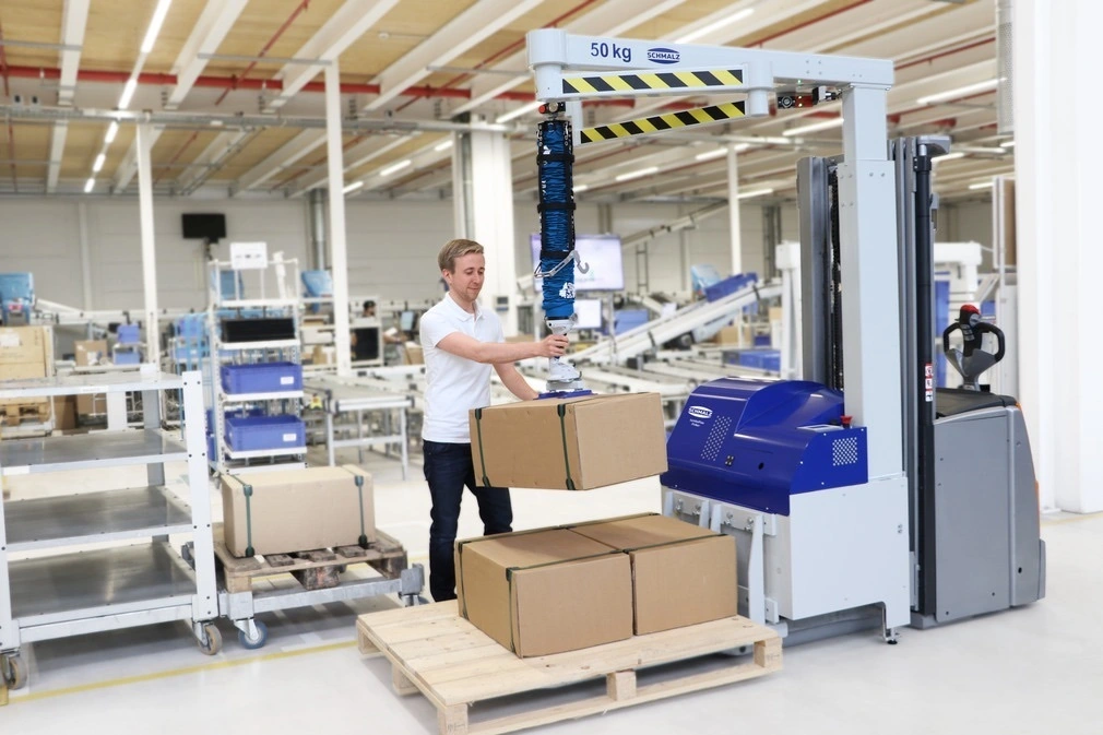 The unique ergonomics and safety of the Schmalz vacuum tube lifters are now also available for mobile use. The JumboFlex Picker can be transported with any standard industrial truck and is thus the ideal picking solution for packages weighing up to 50 kg - regardless of the location.