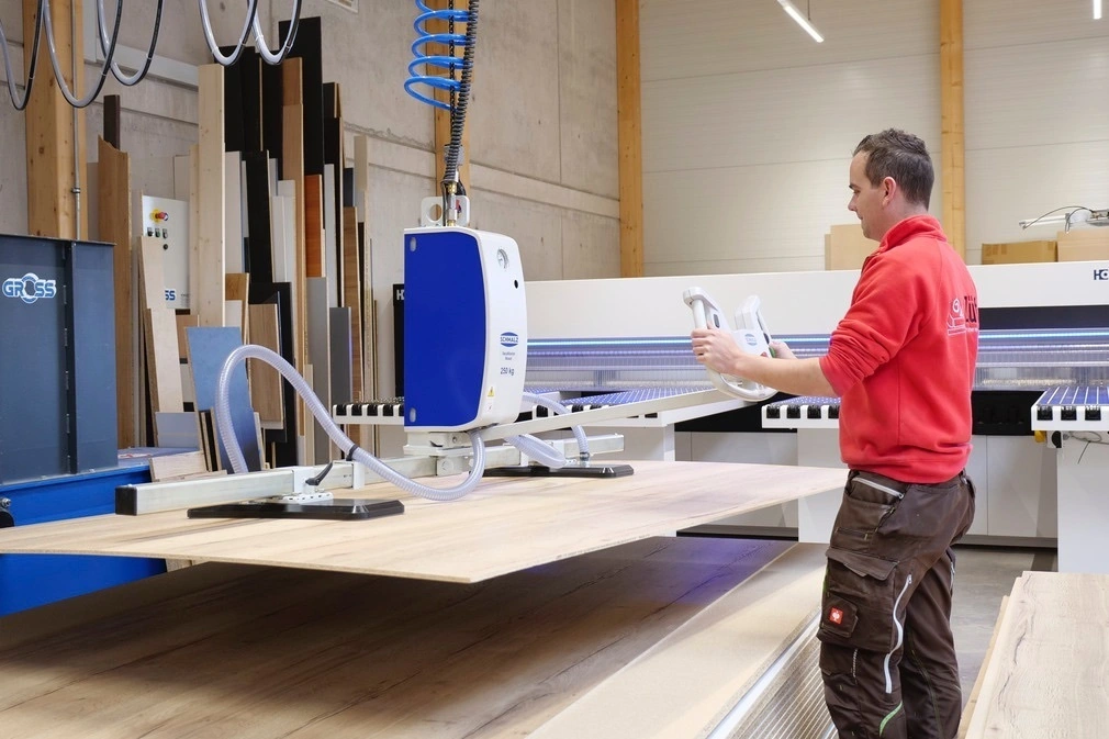 Whether for carpenters, furniture makers or wood traders: The VacuMaster Wood Comfort is the ideal lifting solution for the woodworking shop. The vacuum lifting device transports a wide variety of wooden boards or beams gently and ergonomically. Both airtight and air-permeable workpieces up to 5,000 mm in length can be handled.