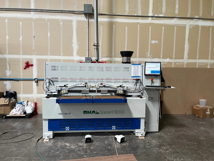 Built in Italy by OMAL Macchine e Sistemi, the HBD 1300 OF performs boring, gluing, and dowel insertion in a single automated cycle.